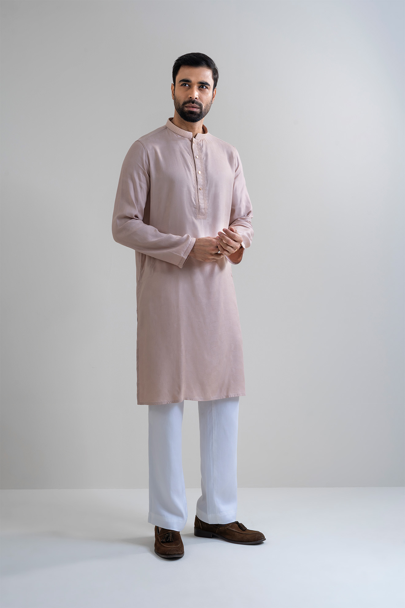 The LUBNAN Men’s Base Color Regular Fit Premium Panjabi is a perfect blend of timeless tradition and everyday comfort. Made from high-quality fabric, it ensures breathability and a soft touch, keeping you comfortable throughout the day. The elegant Base shade adds a calm yet stylish appeal, making it suitable for cultural events, festive occasions, religious gatherings, or even casual outings. Designed with a regular fit, this Panjabi provides a relaxed and effortless look while maintaining a graceful silhouette. Its classic design highlights simplicity, enhanced by fine stitching and durable craftsmanship that reflect LUBNAN’s signature attention to detail. Versatile and easy to style, it pairs seamlessly with pajama, churidar, or trousers, allowing you to adapt your look for different occasions. Whether worn during special celebrations or as everyday traditional wear, the LUBNAN Base Color Regular fit Premium panjabi stands out as a wardrobe essential for men who value tradition, comfort, and elegance.
