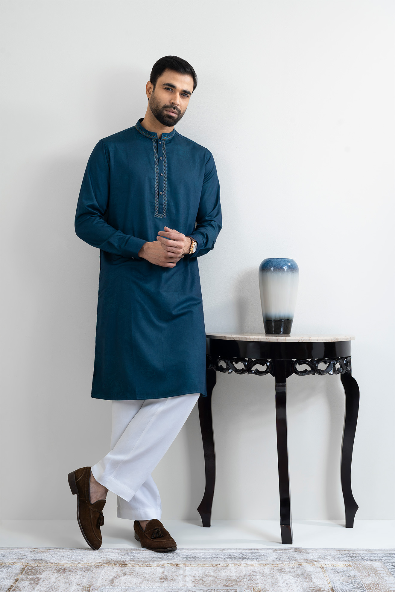 The LUBNAN Men’s Blue Color Regular Fit Premium Panjabi is a perfect blend of timeless tradition and everyday comfort. Made from high-quality fabric, it ensures breathability and a soft touch, keeping you comfortable throughout the day. The elegant Blue shade adds a calm yet stylish appeal, making it suitable for cultural events, festive occasions, religious gatherings, or even casual outings. Designed with a regular fit, this Panjabi provides a relaxed and effortless look while maintaining a graceful silhouette. Its classic design highlights simplicity, enhanced by fine stitching and durable craftsmanship that reflect LUBNAN’s signature attention to detail. Versatile and easy to style, it pairs seamlessly with pajama, churidar, or trousers, allowing you to adapt your look for different occasions. Whether worn during special celebrations or as everyday traditional wear, the LUBNAN Blue regular fit Premium panjabi stands out as a wardrobe essential for men who value tradition, comfort, and elegance.