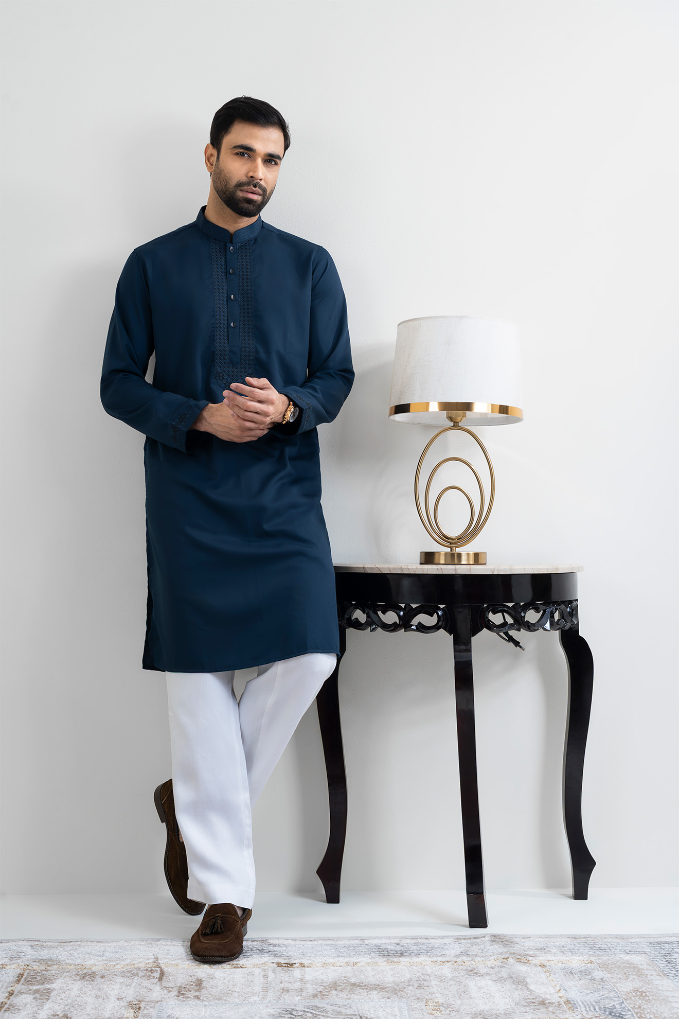 The LUBNAN Men’s Blue Color Regular Fit Premium Panjabi is a perfect blend of timeless tradition and everyday comfort. Made from high-quality fabric, it ensures breathability and a soft touch, keeping you comfortable throughout the day. The elegant Blue shade adds a calm yet stylish appeal, making it suitable for cultural events, festive occasions, religious gatherings, or even casual outings. Designed with a regular fit, this Panjabi provides a relaxed and effortless look while maintaining a graceful silhouette. Its classic design highlights simplicity, enhanced by fine stitching and durable craftsmanship that reflect LUBNAN’s signature attention to detail. Versatile and easy to style, it pairs seamlessly with pajama, churidar, or trousers, allowing you to adapt your look for different occasions. Whether worn during special celebrations or as everyday traditional wear, the LUBNAN Blue Color regular fit Premium panjabi stands out as a wardrobe essential for men who value tradition, comfort, and elegance.