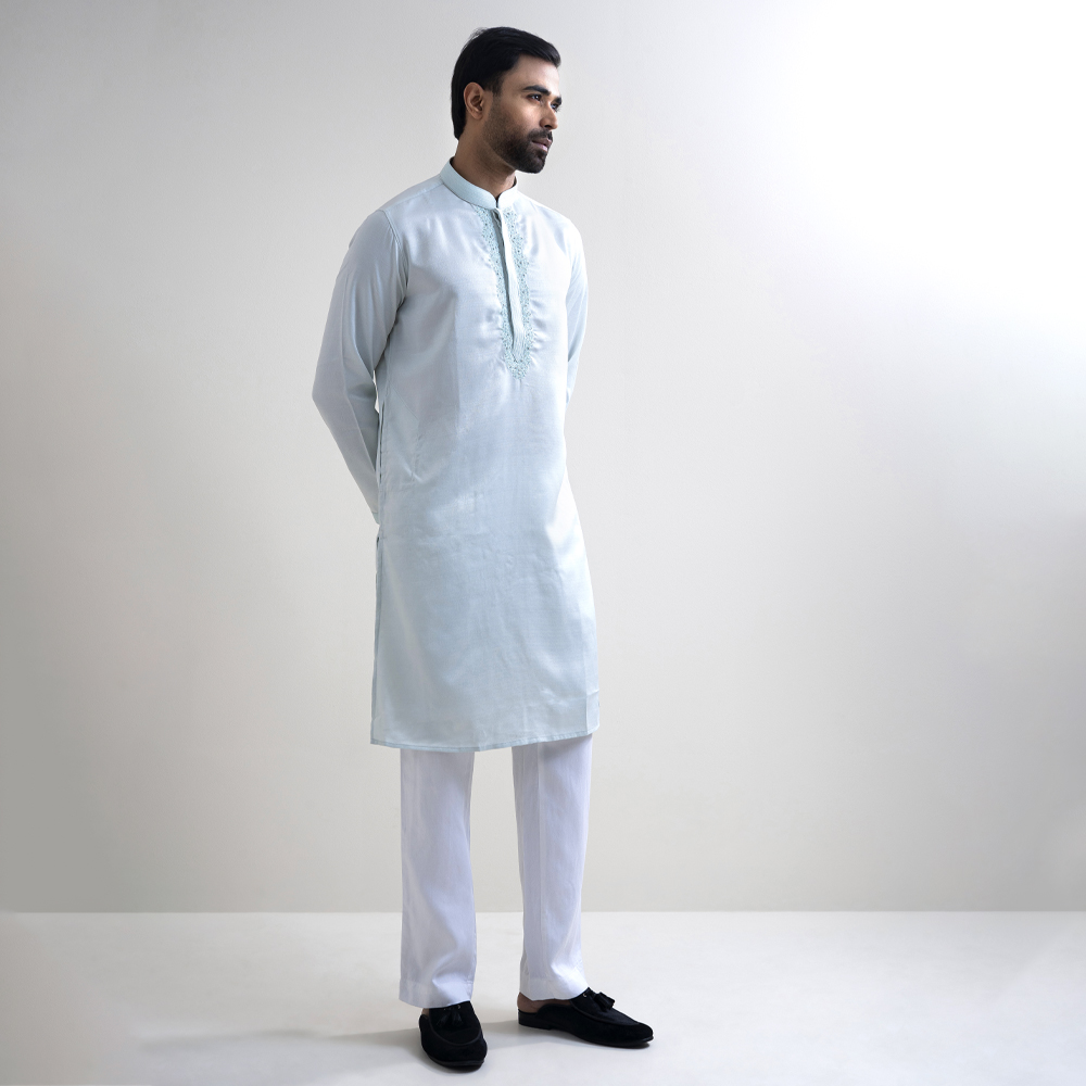 LUBNAN Men’s Lite Blue-Grey Color Regular Fit Premium Panjabi